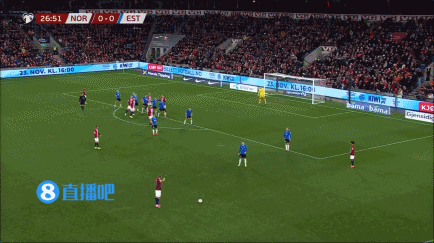 上半场补时1分钟,挪威0-0爱沙尼亚。